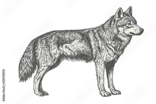 detailed black and white sketch of a wolf isolated png transparent background