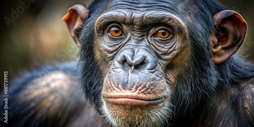 Detailed close-up of a chimpanzee's face with expressive eyes, chimpanzee, face, close-up, detailed, expressive, eyes, animal
