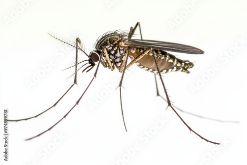 mosquito, insect, closeup, macro, wildlife, nature, biology, entomology, pest, parasitic, compound, eye, proboscis, leg, wing, antennae, scientific, detailed, white, background, animal, arthropod, winged, zoology, invertebrate, exoskeleton, hexapod, vector, nuisance, tiny, small, microscopic, anatomy, creature, fly, buzzing, landing, resting, suspended, hovering