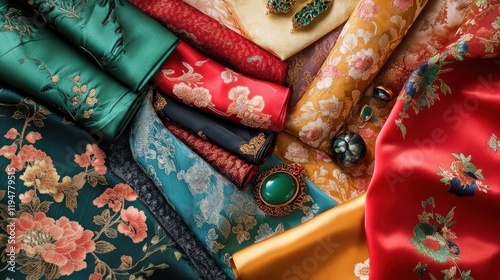 fabric, textile, colourful, pattern, silk, embroidery, floral, traditional, vibrant, luxury, fashion, design, material, aesthetic, background, art, collection, accessory, gift, sewing, craft, creative, vintage, asian, heritage, culture, elegance, style, hand-made, custom, drapery, surface, detail, photo, decor, arrangement, texture, rich, opulent, showcase