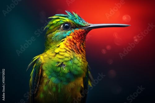 Detailed Hummingbird with Crimson and Azure Accents Close-Up"