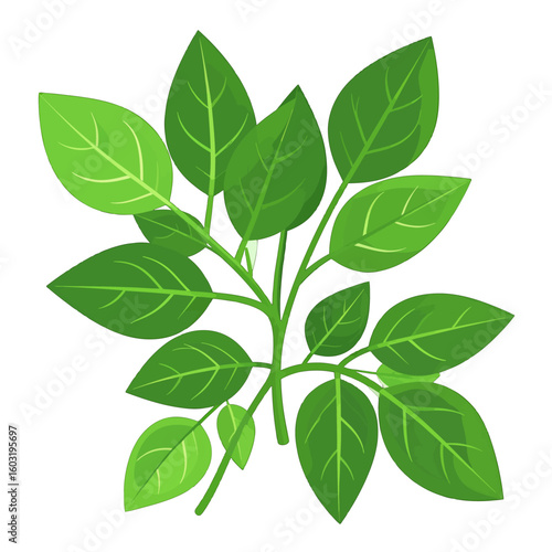 green leaf, plant, leaf, tree branch, nature, foliage, lush, vibrant, fresh, spring, summer, healthy, growth, detailed, illustration, vector, isolated, white background, botanical, green plant, nature scene