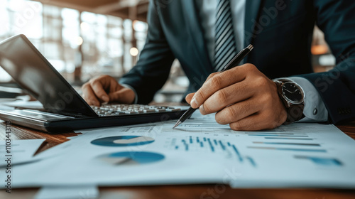 Detailed photo of a financial advisor presenting a comprehensive strategic plan to clients, with a focus on future growth and profitability.