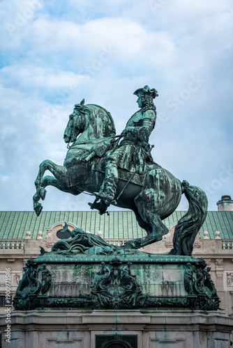 Detailed photos of man on horseback statue in vienna Austria outside the hofburg imperial palace