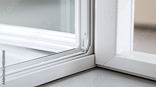 Detailed shot of a clean, white plastic door frame with the door open, showing minimalism in design.
