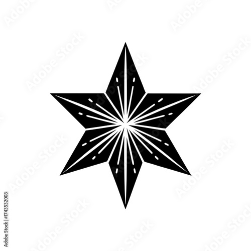 Detailed six pointed star with line design on transparent background silhouette