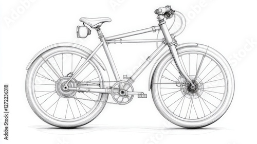Detailed sketch of a vintage bicycle with gear system and handlebars