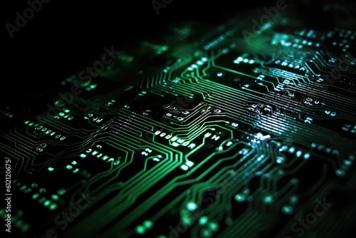 generative, ai, circuit board, electronic, green, technology, closeup, microchip, motherboard, computer, hardware, electrical, component, wiring, soldering, digital, innovation, engineering
