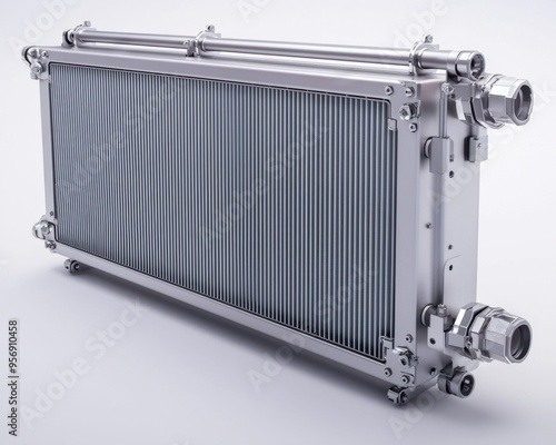 cooling, radiator, engine, fluid, temperature, automotive, efficiency, thermal, machinery, lubrication, pressure, circulation, detail, view, modern, silver, showcase, sleek, design, finely, support, equipment, construction, maintenance, process, repair, hard-wearing, optimal, fitting, safety, model, aesthetic, transport, component, performance, management, corrosion, coolant