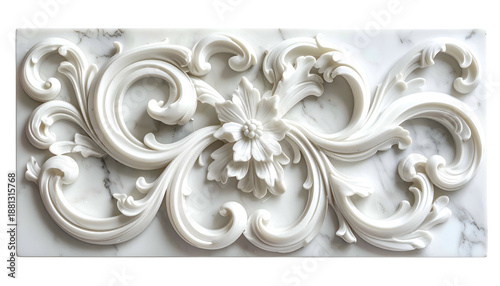marble, relief, carving, white, floral, scrollwork, design, art, sculpture, ornament, baroque, elegant, classic, decorative, detailed, texture, stone, background, surface, pattern, flower, flower petals, leaf, swirl, curve, symmetry, composition, balance, centrepiece, graceful, intricate, smooth, solid, light, shadow, dimension, artistic, craftsmanship, luxury, expensive, hard-wearing, timeless, aesthetic, style, interior, architecture, panel, structure, beautiful