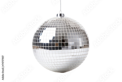Details in the pub, silver night club lighting mirror-ball ,disco ball isolated on transparent and white background.PNG image.
