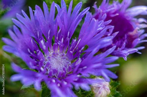 Details of the flowers and buds of the Stokesia, which still blooms beautifully in autumn
