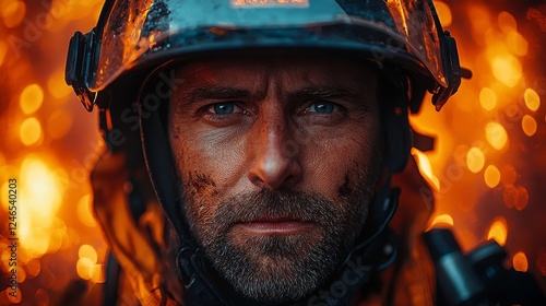 firefighter, smoke, ember, fire, rescue, emergency, profession, danger, heroic, courage, protective, uniform, helmet, glove, heat, intense, dramatic, gritty, moody, serious, focused, determined, rugged, survival, equipment, safety, bravery, action, portrait, closeup, response, crisis, service, protection, duty, hazardous, adrenalin, training, skill, sacrifice, dedication