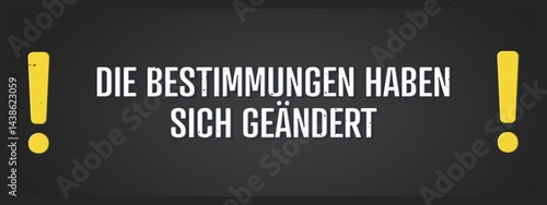 Die Bestimmungen haben sich geaendert (The regulations have changed) - A blackboard illustration with white text.