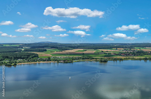 travel, vacation, tour tourism, summer, recreation, recreation, bike, hike, reservoir, artificial, time out, romantic, sexy, birds eye view, aerial photo, panorama, outlook, from above, bavaria, body of water, sunny, sunshine, countryside, nature, countryside, idylli, vacation, holiday resort, season, heaven, smiling, forest