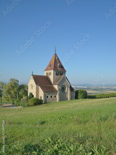 die Kreuzkapelle auf dem Wissberg im Weinanbaugebiet Rheinhessen bei Gau-Bickelheim,Rheinland-Pfalz,Deutschland