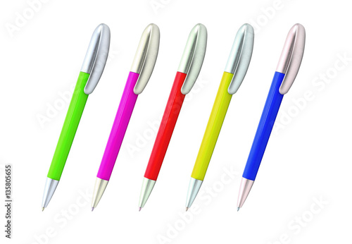 Different colors pens isolated on white background