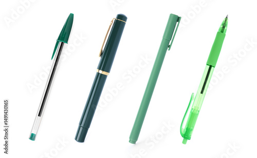 accessory, background, ball, ball pen, bright, business, cap, classic, collage, collection, college, colours, design, different, education, elegance, elegant, equipment, green, group, ink, instrument, isolated, item, luxury, many, new, nobody, object, office, pen, pen, plastic, row, school, set, stationery, study, stylish, supply, tool, white, write, writing