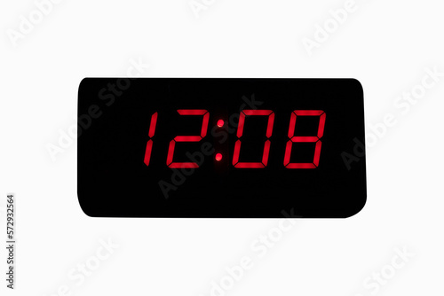 Digital alarm clock time LED red number on black digital electric isolated on white background. time symbol concept for celebrating the New Year.