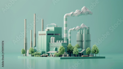 factory, industrial, smokestack, digital artwork, minimalist, greenery, illustration, pollution, manufacturing, environmentally friendly, sustainable, emission, tree, environmental, energy, production, modern, abstract, design, creative, water, pastel, technology, future, urban, simplicity, conceptual, ecological, business, climate, serene, tranquil, three-dimensional, graphic, contemporary, artwork, landscape, background