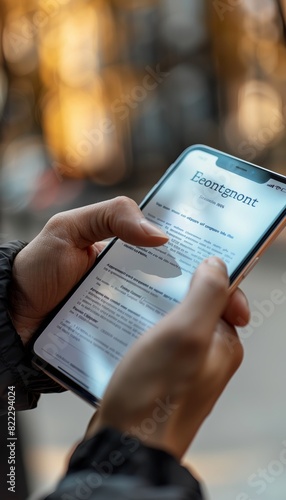 digital, contract, smartphone, mobile, tech, legal, service, app, interface, design, modern, minimalistic, setup, technology, interaction, person, hand, document, reading, text, screen, blurred, background, focused, web page, term, agreements, user, sharpened, closeup, business, professional, communication, office, working, hand, workspace, remote, electronic, contraption, device, paperwork, sleek