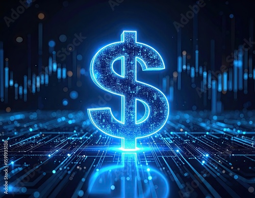 digital, dollar, signs, circuit, board, blue, light, glow, tech, finance, economy, futuristic, abstract, graphic, design, innovation, technology, money, electronic, symbol, modern, datum, network, interface, virtual, concept, three-dimensional, bright, pattern