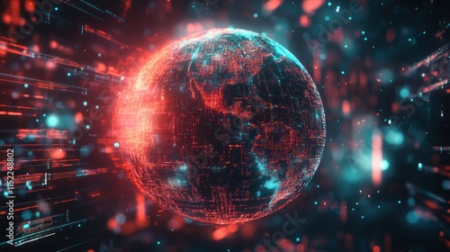 global, network, cyberspace, datum, technology, digital, earth, connection, communication, information, futuristic, abstract, innovation, science, earth, globe, planet, line, code, binary, pixel, particle, energy, light, speed, flow, background, texture, design, illustration, graphic, red, blue, black, dark, vibrant, glowing, bright, modern, dynamic, high technology, wireframe, three-dimensional, render