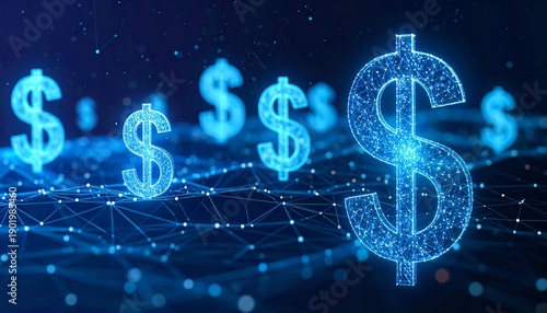 digital, futuristic, glowing, dollar, symbol, finance, technology, investment, prosperity, network, blue, currency, virtual, innovation, modern, economy, wireframe, three-dimensional, abstract, business, wealth, electronic, savings, global, online, banking, success, datum, light, neon, grid, transaction, secure, minimal, gradient, cyberspace, commerce, creative, concept, cyber, communication, exchange, capital, trend, advancement