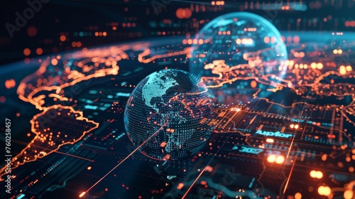 earth, globe, datum, network, digital, circuit board, map, technology, information, connectivity, cyberspace, cyber, tech, global, communication, continent, exchange, transfer, line, glow, geography, connection, computer, system, electronic, motherboard, hardware, futuristic, binary, code, software, stream, cybernetic, international, node, innovation, artificial intelligence, ai, virtual, pattern, blue, red, infrastructure, satellite, orbit, science, engineering, abstract, visualisation