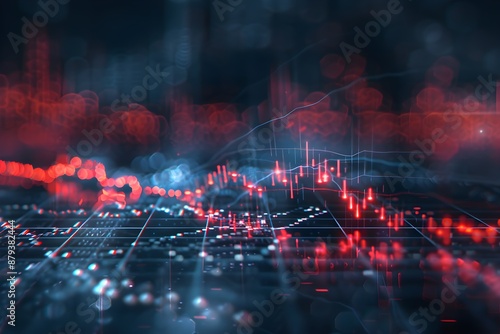 Digital graph graphic image with red rays looking like stock or price graph on blue digital concept background