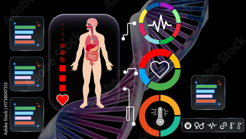 digital holographic visuals displaying vital health statistics like heart rate, temperature, and other health metrics - 1