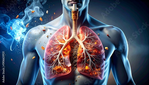 lung, torso, respiratory, system, digital, illustration, vibrant, highlighted, inflammation, damage, cigarette, broken, tobacco, ash, harmful, smoking, health, medicals, diagnostic, educational, symbolic, awareness, clean, modern, stylised, visual, composition, aesthetic, design, concept, ambient, central, layout, isolated, neat, tidy, expressive, illustrative, biological, anatomical, clinical, preventative