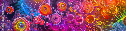Digital Illustration of Multicolored Cells and Cellular Structures