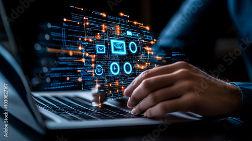technology, laptop, futuristic, hand, computer, innovation, business, information, graphic design, virtual, workspace, modern, communication, software, research, productivity, network