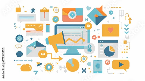 Digital Marketing Related Vector Illustration. Flat Modern Design