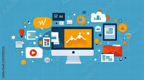 marketing, digital, strategy, business, growth, online, success, technology, computer, cyberspace, datum, graph, chart, website, social, media, electronic mail, content, video, mobile, tablet, cloud, network, communication, connection, information, planning, management, performance, result, optimization, innovation, creativity, idea, teamwork, collaboration, progress, development, improvement, solution, goal, objective, target, branding