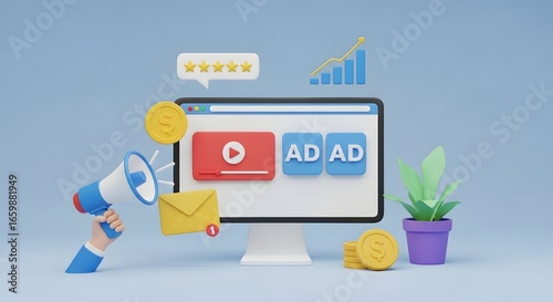advertising, promotion, campaign, growth, chart, datum, success, business, strategy, online, computer, screen, icon, visual, concept, illustration, three-dimensional, graphic, design, engagement, achieving, performance, result, optimization
