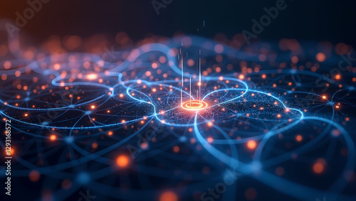 visualisation, technology, datum, network, abstract, futuristic, interconnected, node, glowing, connection, cyberspace, cyberspace, communication, information, artificial intelligence, ai, science, research, innovation, online, web, line, blue, orange, modern, design, circuit, system, information technology, digital, render, light, software, hardware, graphic, diagram, concept, background, structure, pattern, engineering, analysis