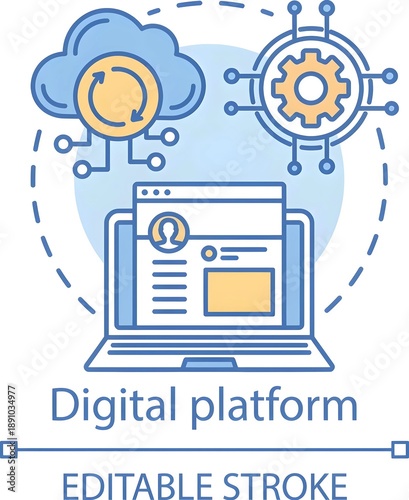 platform, icon, digital, technology, abstract, line, information, communication, cloud, system, cyberspace, concept, computer, online, software, profile, general, vector, editable, symbol, app, link, database, outline, stroke, industrial, illustration, logotype, design, isolated, graphic, network, web, signs, idea, drawing, industry, pictogram, connection, element, user, conception, account, connect, contour, linear, notion, personal