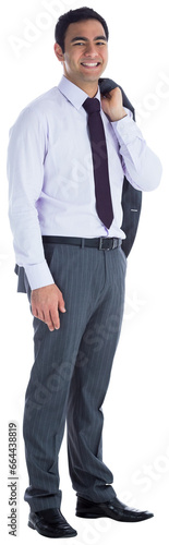 Digital png photo of happy biracial businessman standing on transparent background