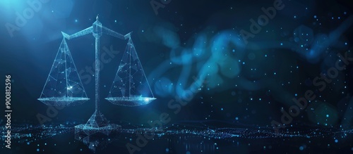 scale, justice, law, balance, digital, representation, blue, background, abstract, technology, future, modern, concept, symbol, equality, fairness, court, judge, legal, system, right, wrong, truth, judgement, decision, verdict, geometric, pattern, dot, line, light, glow, bokeh, blur, dark, night, starry, sky, horizon, surface, ground, particle