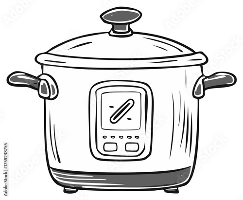 Digital Slow Cooker Illustration: Kitchen appliance cooker in black and white for cooking