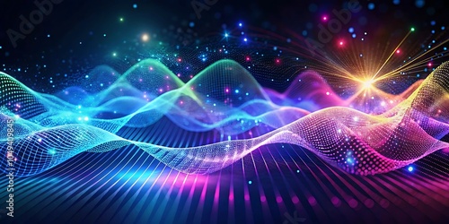 wave, dynamic, gradient, particle, abstract, technology, colourful, connection, futuristic, glow, graphic, network, geometric, motion, art, hologram, illustration, light, modern, blue, digital, line, pattern, background, dot, effect, flow, fractal, neon, purple, render, science, three-dimensional, vibrant, visual, energy, wallpaper, space, concept, dark, datum, decoration, design, holographic, texture, aim, artificial intelligence, blurred, bokeh