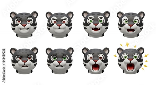 tiger, animal, digital, illustration, graphic, cartoon, character, grey, expression, happy, sad, angry, surprised, cute, set, collection, emotion, design, vector, isolated, graphic, image, artwork, head, face, digital artwork, wildlife, mammal, white background, copy space, emotion