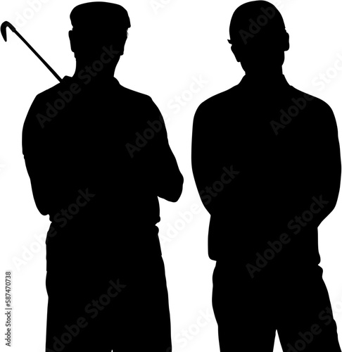 no people, white background, computer graphic, vector, isolated, illustration, studio shot, cut-out, outline, silhouette, standing, holding, copy space, sports equipment, golfer, sport, golf club, cap