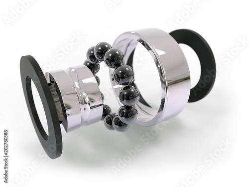 Disassembled ball bearing, isolated on white background, 3d render.