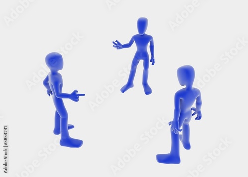 three-dimensional, rendering, figure, gesture, person, people, group, gathering, three, three, character, cartoon, symbolic, small, blue, circle, facing, negotiate, discussion, meeting, brainstorm, brainstorming, meet, argue, communicate, communication, talk, talking, opinion, difference, tolerance, argument, solving, solution