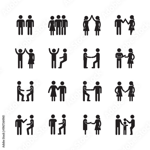 people, group, icon, silhouette, black, vector, graphic, design, illustration, symbol, couple, family, partnership, team, together, connection, human relationships, interaction, human, figure, stick, minimalist, simple, flat, monochrome, white, background, oneness, community, friendship, love, affection, support, celebration, joy, happiness, agreements, understanding, collaboration, assistance, sharing, bonding, hugs, greeting, gesture, intimacy, social, activity