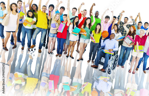 adolescence, african, african american, african ethnicity, arms outstretched, arms raised, asian, asian ethnicity, casual attire, celebration, cheerful, colourful, community, connection, diverse, diversity, ethnicity, friendship, happiness, high school, many-coloured, organisation, organized group, people, person, smiling, student, studio shot, team, teenage, teenagers only