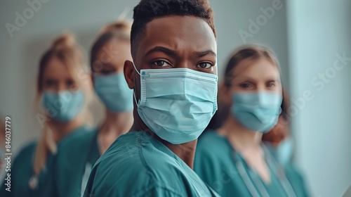 diverse, medicals, team, mask, scrub, united, hospital, ward, patient, care, doctor, nurse, health care, professional, multicultural, group, staff, working, together, oneness, treatment, emergency, clinic, surgeon, pandemic, protective, gear, uniform, support, determined, compassionate, dedicated, service